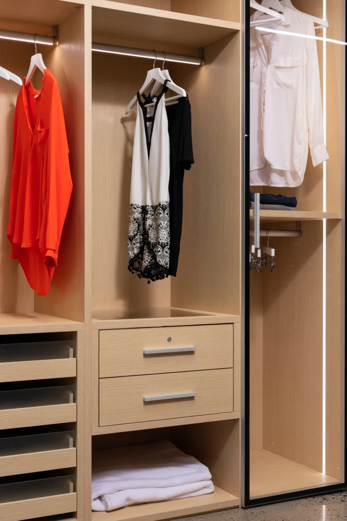 Fully customizable closet systems with integrated lighting, modular shelving, and luxe finishes. Designed for visual clarity and functional ease.